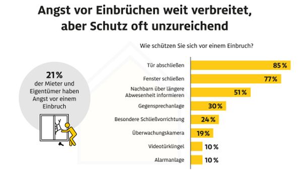 Laut einer Umfrage der ADAC Zuhause Versicherung unter Mietern sowie Eigentümern fürchtet sich jeder Fünfte Deutsche vor einem Wohnungseinbruch.